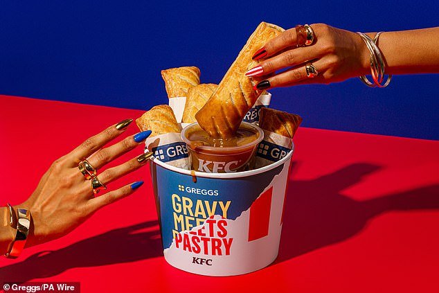 As marcas disseram que a aliança seguiu a revelação de que os britânicos consumiram 15.000 litros de molho KFC e mais de um milhão de rolos de salsicha Greggs todos os dias no ano passado.
