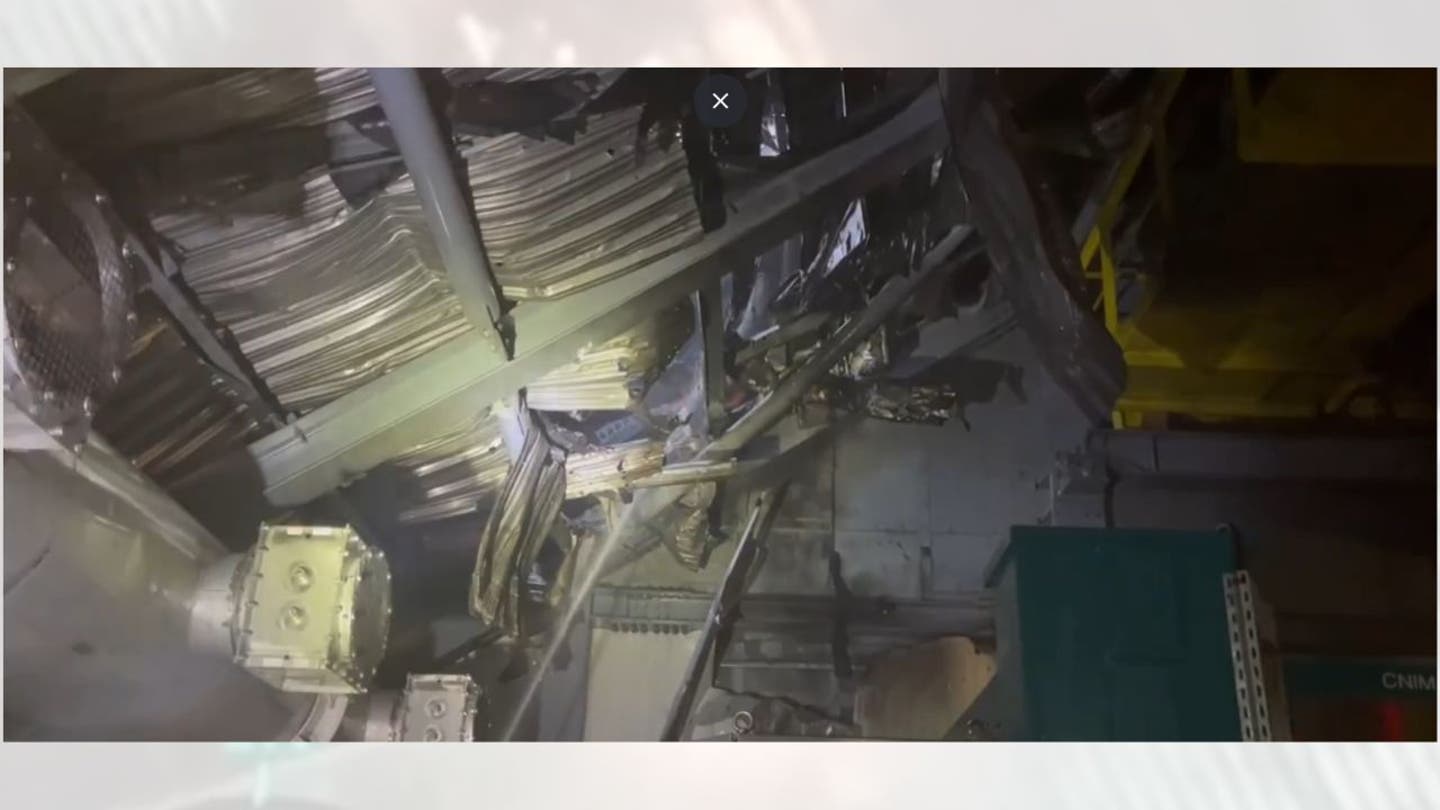 As equipes avaliam os danos após o que foi dito ser um drone atingiu a concha de proteção na planta de Chernobyl. (@Zelenskyyua)