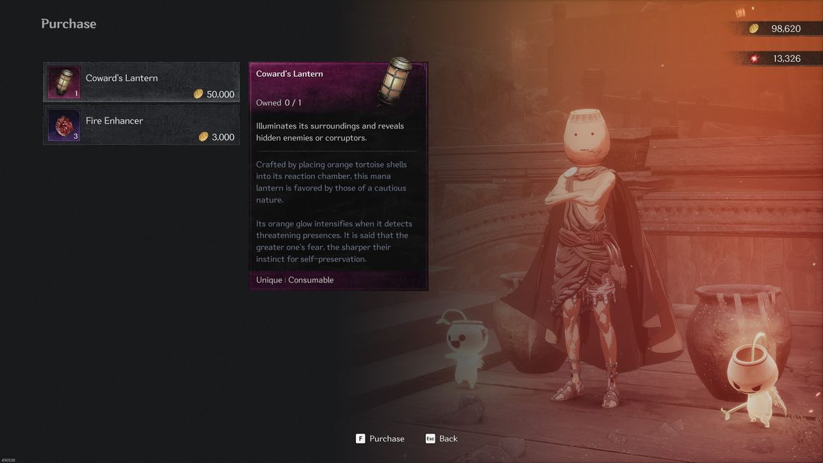 Os inimigos invisíveis são péssimos, todos podemos concordar. Khazan tem sua própria variante de inimigo sorrateiro na forma de um esqueleto semelhante ao assassino que aparece em certas áreas a partir do meio do jogo. Enquanto você pode ver suas pegadas à medida que elas se movem, você pode adquirir um balcão difícil para eles na forma da lanterna do covarde. Você pode comprar isso de Danjin-um personagem de cabeça de jarra-no berço da missão de bônus. Também vale a pena concluir, pois desbloqueia Danjin como vendedor na fenda e ele lhe dará cosméticos à base de maconha em troca de encontrar seus vasos ao longo do jogo.