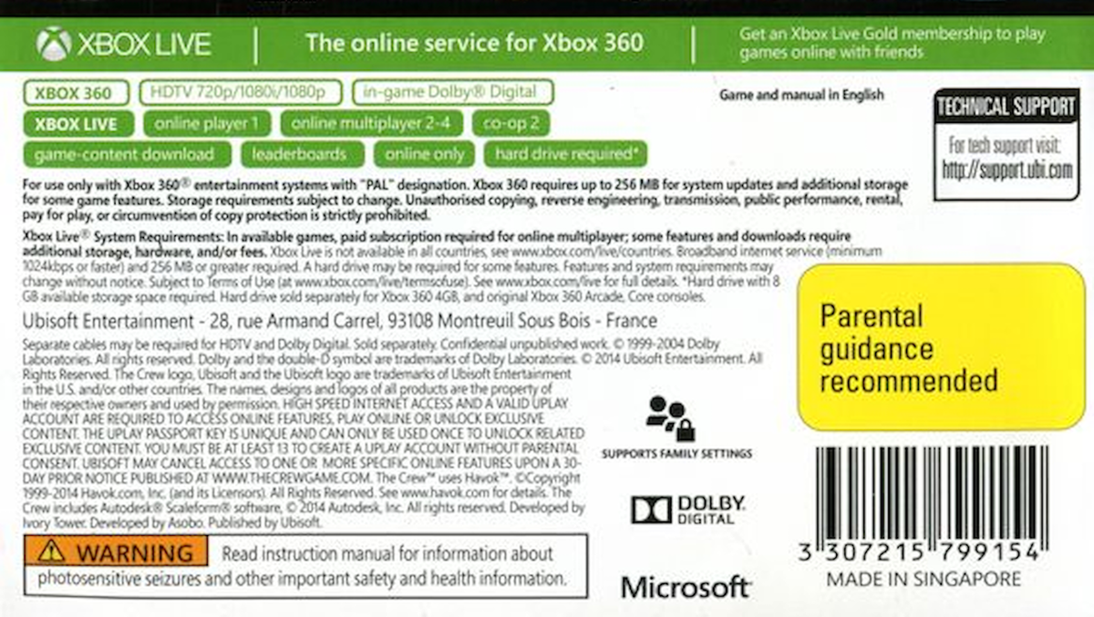 Uma viagem para Mobygamesque tem varreduras da embalagem da tripulação, confirma que essas mensagens estão realmente lá. Eles são “claros e conspícuos?”