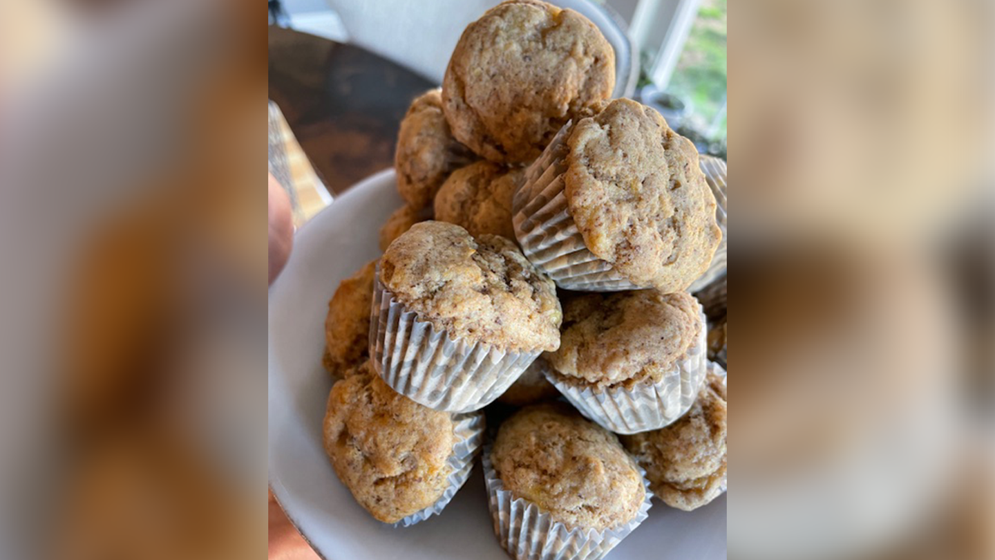 Os muffins de banana sem ovos podem ser armazenados na geladeira por até uma semana. (Miss Nutritive Eats)