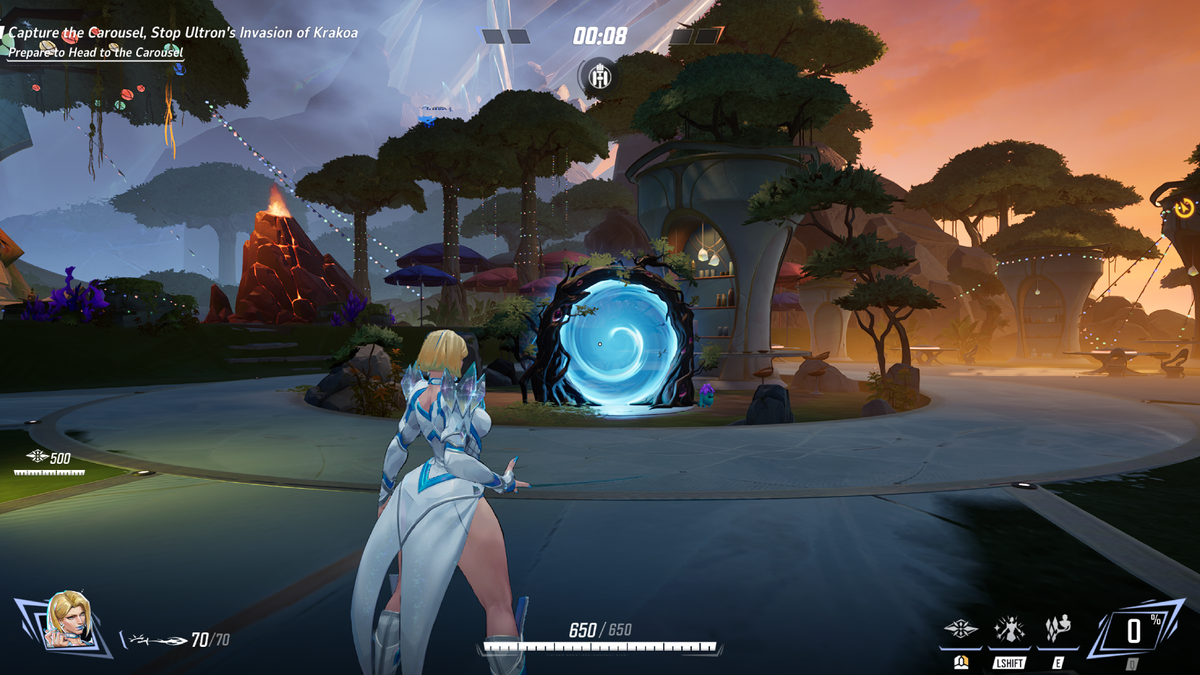 A forma e as habilidades normais de Emma Frost são muito boas para o jogo padrão: seu pulso telepático tem um alcance suficiente para que você possa alcançar heróis voadores no céu e manter outros tanques à distância. Mas não é tão divertido quanto sua forma de diamante.