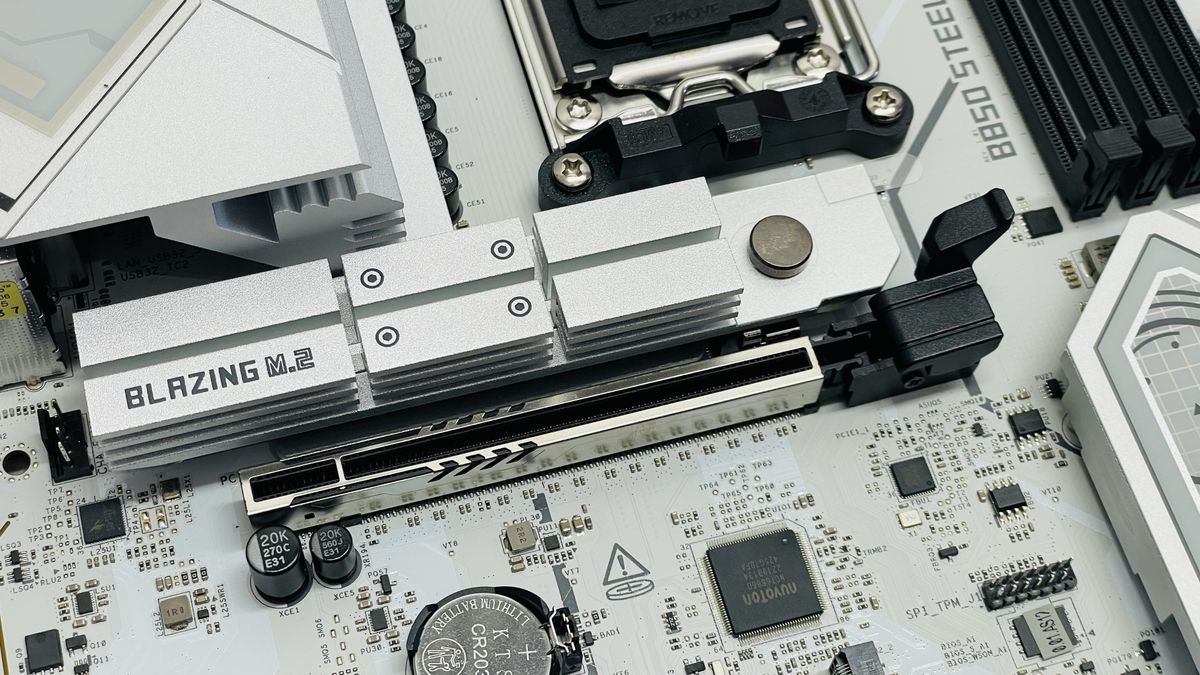 No entanto, ele não vai tão bem com o branco quanto o Gigabyte e suas placas -mãe de gelo aorus elite, que possuem portos e soquetes brancos para itens como módulos de memória e dispositivos PCIE, no entanto, o equivalente do modelo Chipset de Asrock B850 que estamos analisando hoje é vendido por visivelmente mais no lado do Gigabyte. O chipset B850 também traz consigo a flexibilidade de soltar certos recursos que você pode esperar ver em uma moderna placa -mãe AMD.