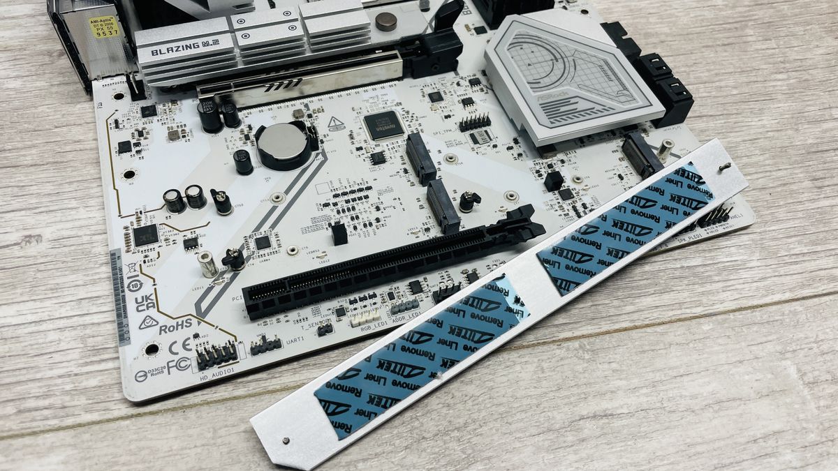 No meio da placa está uma única porta PCIE 5.0 M.2 que está equipada com um grande dissipador de calor sem ferramentas, enquanto o restante das portas M.2 é todo PCIE 4.0 e tudo pode ser usado ao mesmo tempo a toda velocidade, com o único sacrifício sendo o segundo slot para PCIE. Ser capaz de executar uma placa gráfica PCIE 5.0, SSD e três SSDs adicionais do PCIE 4.0 ao mesmo tempo, é bastante impressionante para o que é uma placa -mãe de ponta baixa, mesmo que as placas gráficas não se beneficiem por alguns anos em termos de oferecer taxas de quadros mais altas.
