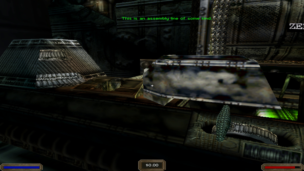 Eu me enruguei entre os tel-screens, os quais pareciam ser feeds de CCTV vivos de células de prisão vazias e os níveis desolados, captando uma série aparentemente interminável de medkits. O que era estranho, porque literalmente nada nos níveis parecia ter alguma maneira de me danificar. Ou assim eu pensaria até que tropecei em mais uma coisa completamente invisível que lançou o jogo “Você foi reeducado” na tela.