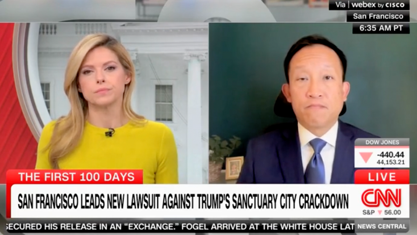 Em uma entrevista à CNN na quarta -feira, o advogado da cidade de São Francisco, David Chiu, anunciou seu processo contra a repressão à imigração do governo Trump – apresentada em nome de funcionários de São Francisco e aqueles em outras cidades do santuário em toda a América. Ele também defendeu as políticas da cidade do santuário, dizendo que eles tornam a América mais segura, ao mesmo tempo que as tentativas de Trump de punir essas cidades fazem o contrário.