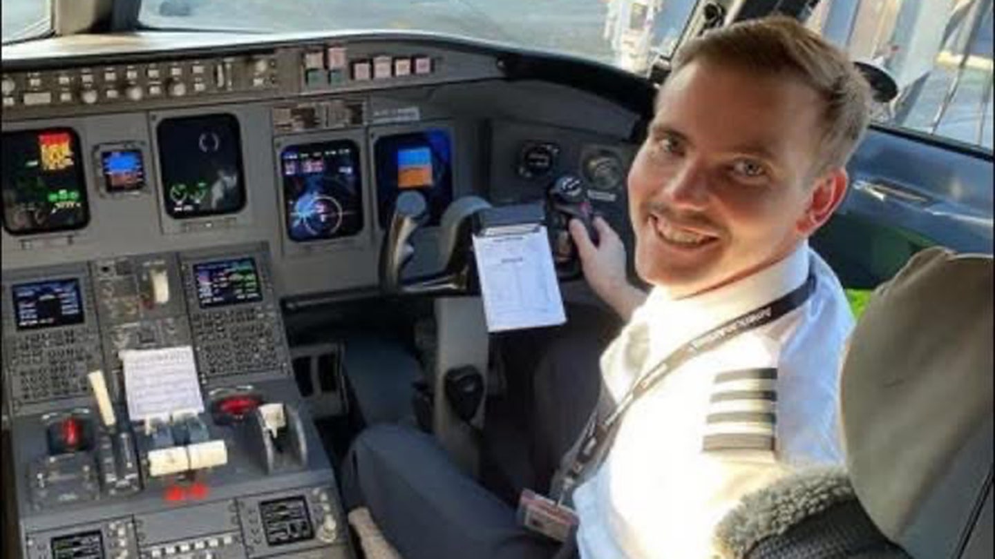 Nesta foto compartilhada por Timothy Lilley, Sam Lilley, o co-piloto que pereceu no voo 5342 da Fatal American Airlines, sorri do cockpit de um avião. (Timothy Lilley)