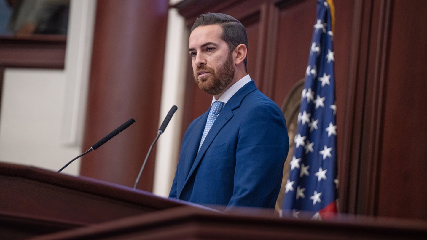 O presidente da Flórida, Daniel Perez, promete que seu estado ficará com o presidente Trump ao reprimir a imigração ilegal. (Florida Câmara dos Deputados)