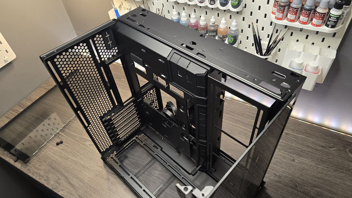 Isso não parece muito, mas quando você considera ainda suporta placas-mãe E-ATX, GPUs completas, quatro radiadores e 11 fãs em seu modo de refrigeração com malha completa, esse é um corte muito impressionante.