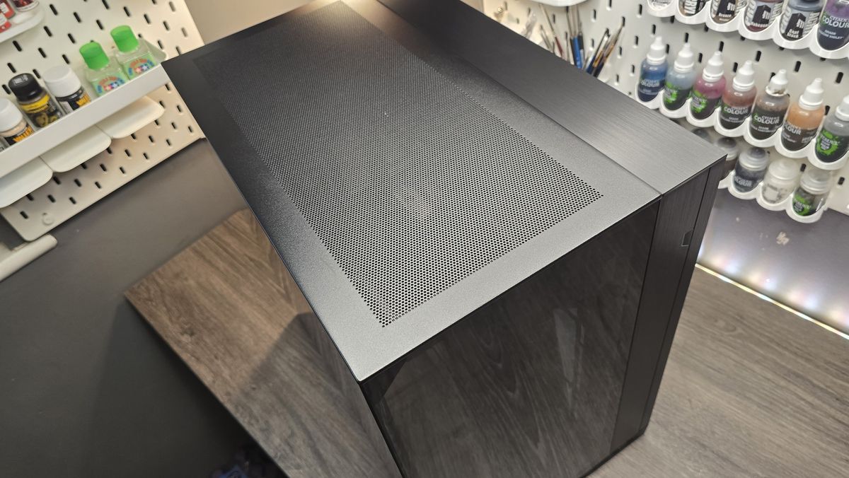 O próprio chassi, de uma perspectiva de looks, é excepcionalmente limpo e, como o nome sugere, surpreendentemente compacto também. Ainda assim, não é sem falha. Não estou convencido de que a passagem traseira da tubulação AIO realmente valha a pena, e certamente na variante não-malha, há uma enorme lacuna de metal acima da placa-mãe que, sem nada lá, parece um pouco estéril.
