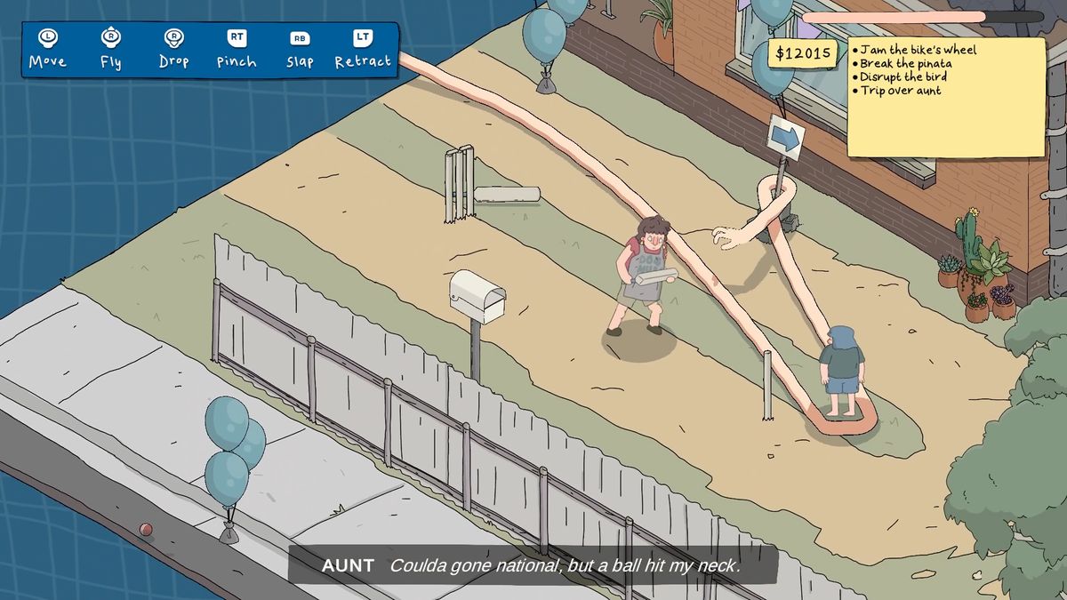 Esse braço é você. Em Meus braços estão mais longos agora“Você é um braço muito longo. Você rouba as coisas. É um jogo de comédia”, explicou Matthew Jackson, da Toot Games, o pequeno estúdio australiano por trás do jogo surreal de assalto.