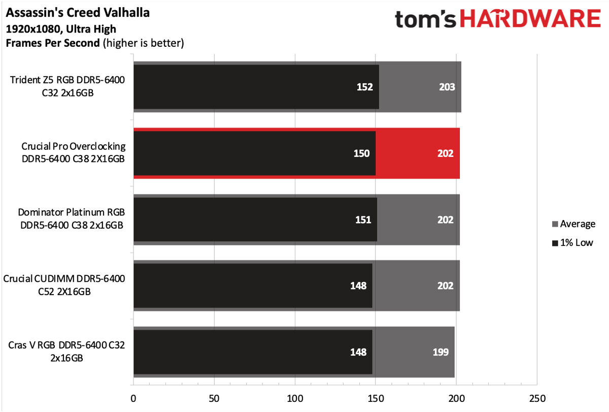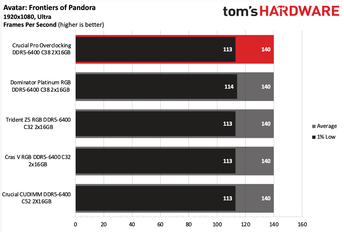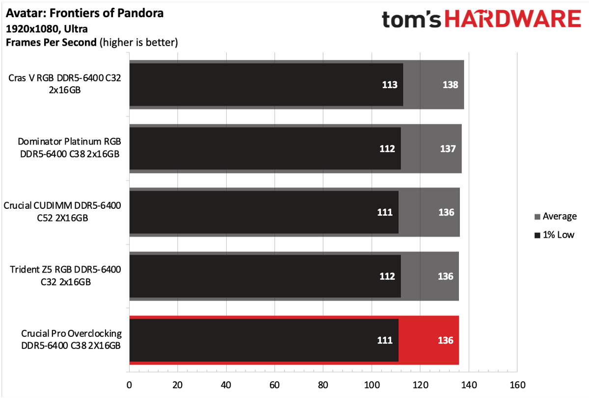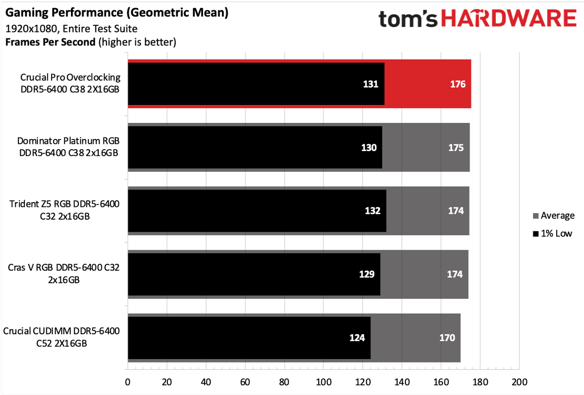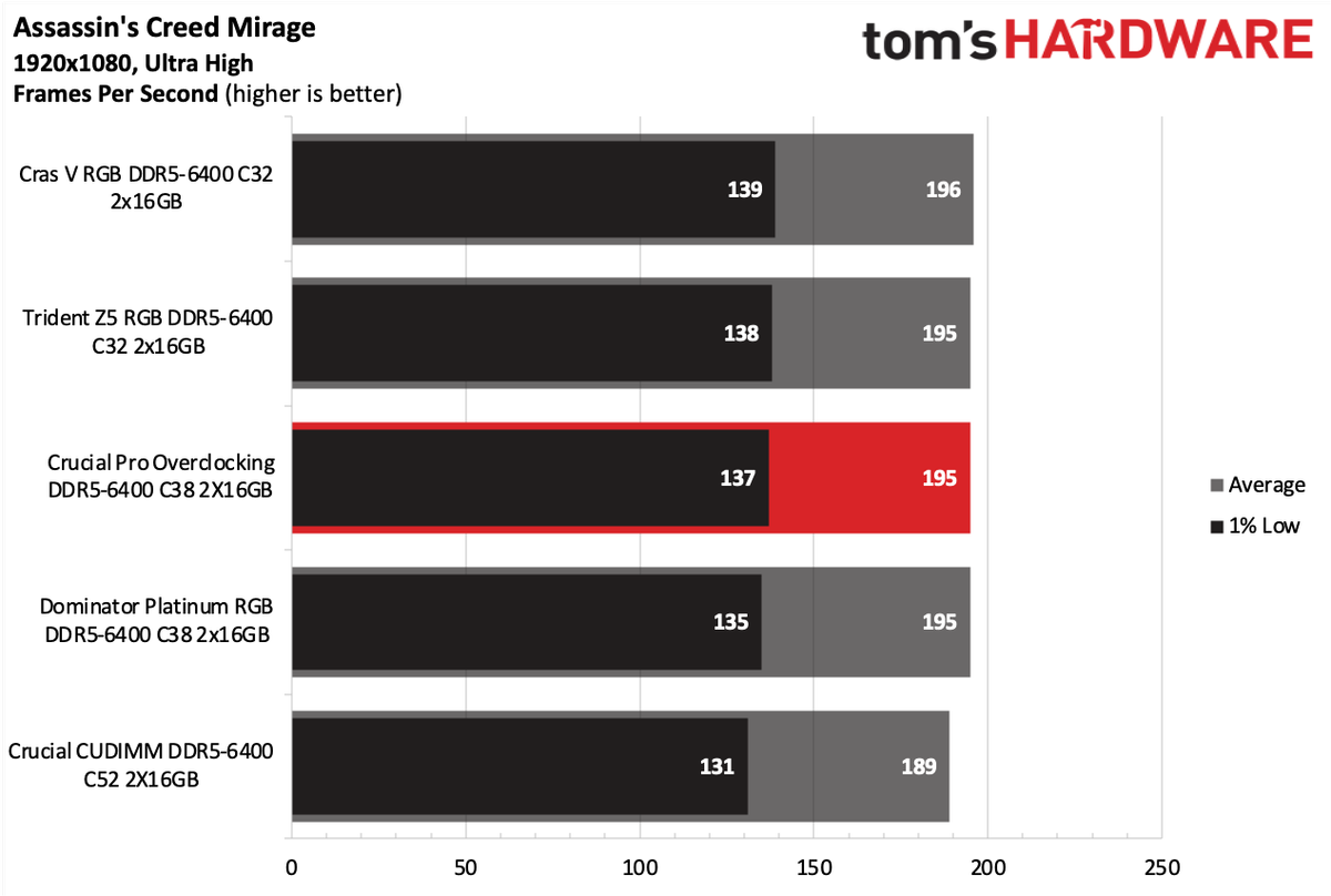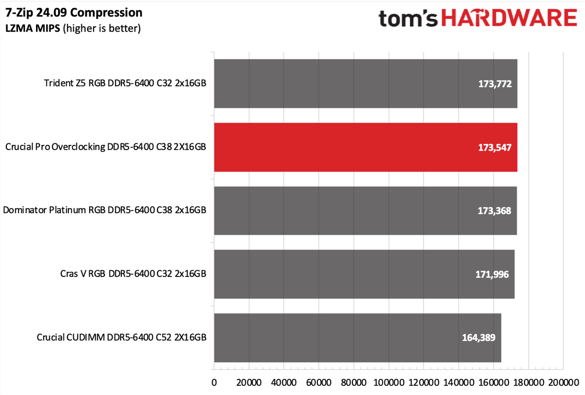 O kit de memória da Crucial continuou a liderar o desempenho do aplicativo na plataforma AMD x870. Ele mostrou com confiança suas proezas em benchmarks, incluindo Applications Adobe, Corona 12, Handbrake e Y-Cruncher. Em contraste com a plataforma Intel, a memória de overclock do Pro emergiu como o kit de desempenho superior para jogos na plataforma AMD.