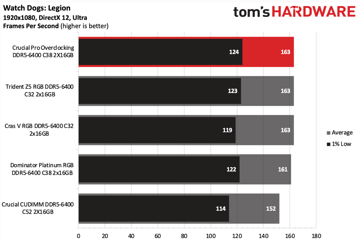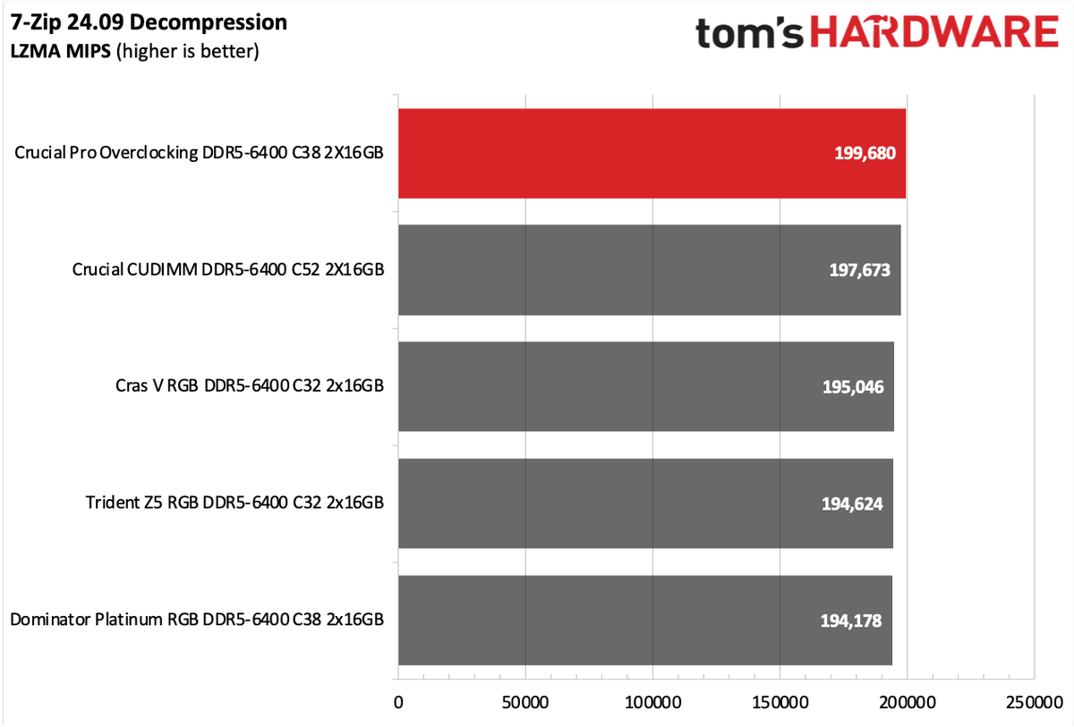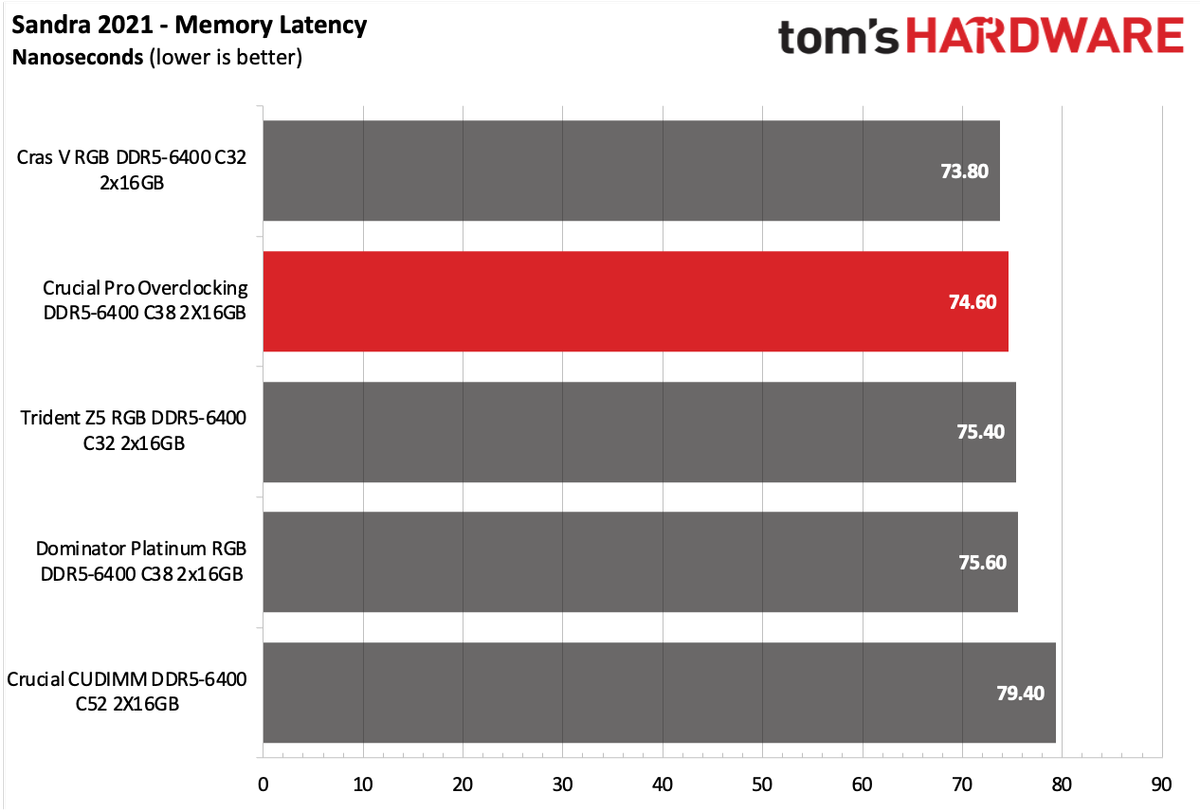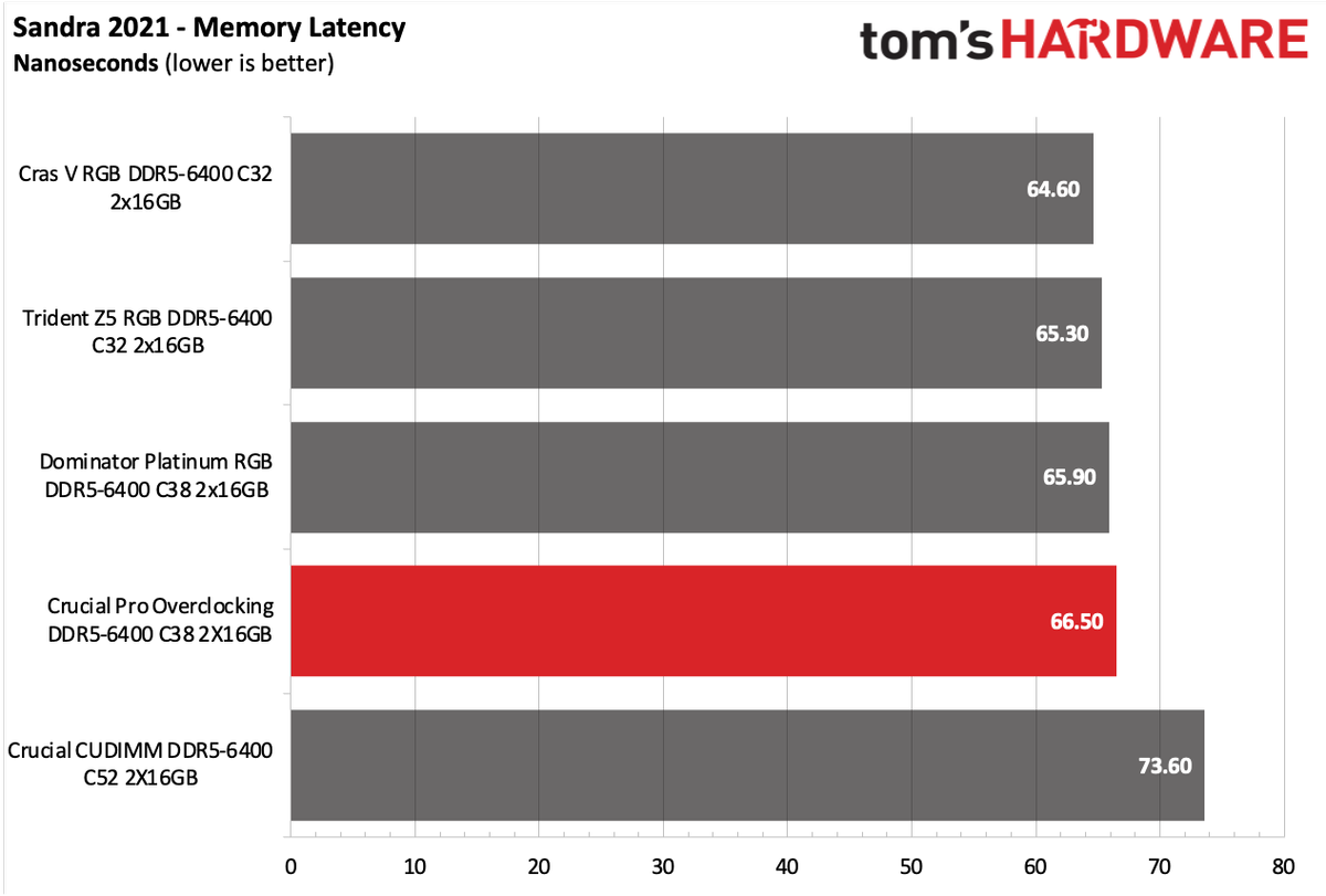 | Crucial Pro Overclock DDR5-6400 C38 | 38-38-38-84 (2T) | N / D | 38-40-40-84 (2T) | N / D | N / D |