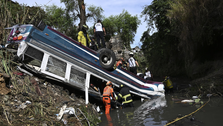 Dezenas mortas depois que o ônibus cai em Ravine na Guatemala
