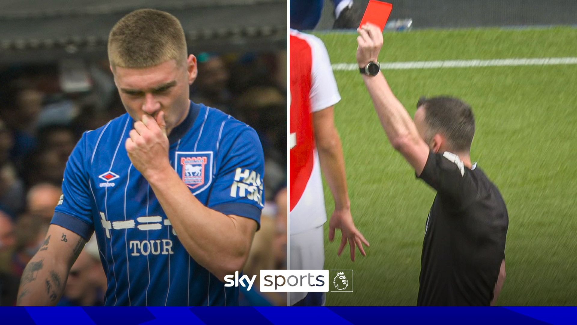 Leif Davis, de Ipswich, foi expulso para um desafio feio em Bukayo Saka em seu confronto da Premier League com o Arsenal.