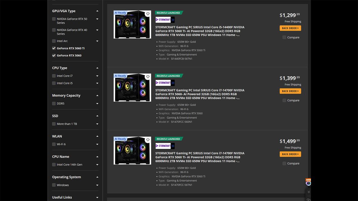 PCs pré-construídos com RTX 5060 TI e RTX 5060 não lançados surgem em varejistas on-line