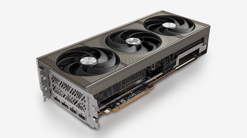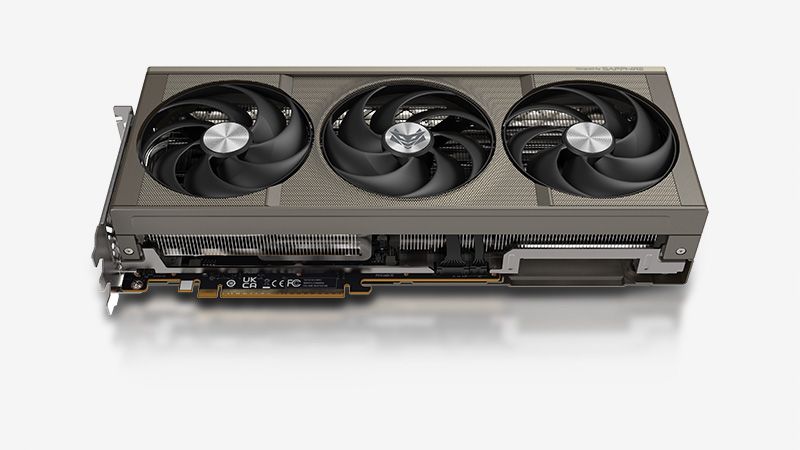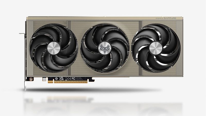 Além de seus truques sofisticados, o RX 9070 XT é uma grande placa gráfica tripla-fã tripla com um esquema de cores prateado. Se o histórico se repetir, o modelo NITRO+ será a principal variante da Sapphire e a versão mais rápida do RX 9070 XT em sua programação. A GPU vem com a tecnologia de resfriamento Tri-X da Sapphire e os tubos de calor composto otimizado. A entrega de energia é composta por um sistema de entrega de energia de 16 fases instalado em um PCB de cobre de alto TG, supostamente composto por 12 camadas de alta densidade de 2 onças de cobre.