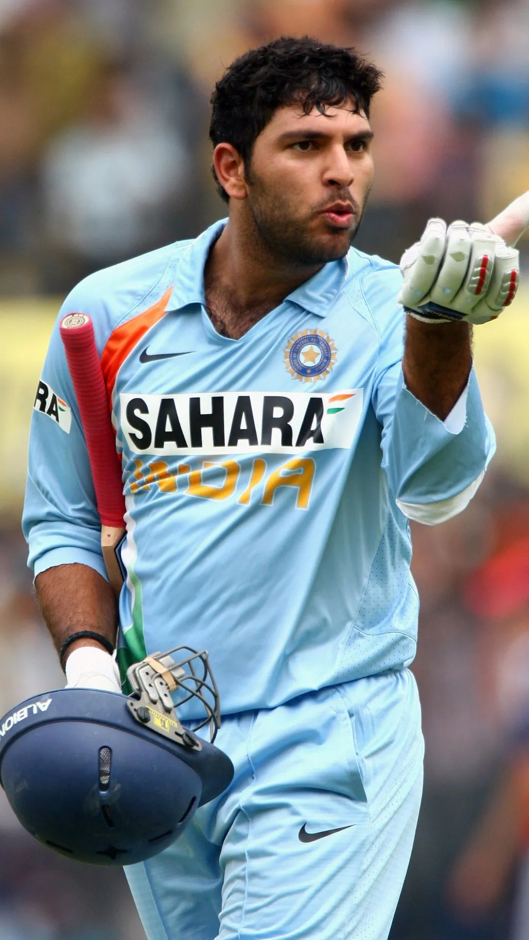 Yuvraj Singh, da Índia, jogou mais de 50 corridas nas partidas nocautes dos três formatos da ICC White Ball.