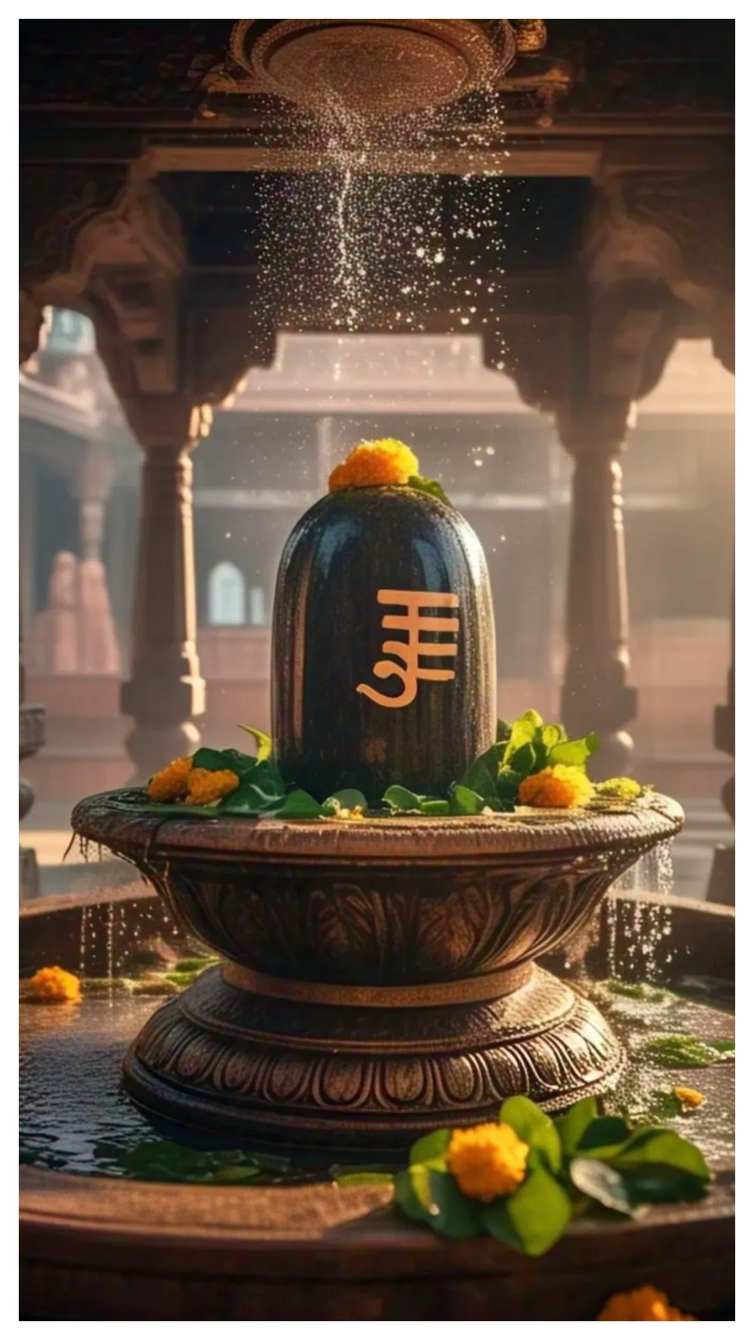 Bholenath está satisfeito com a execução de Jalabhishek de Shivalinga em momentos auspiciosos e chupa as bênçãos dos devotos.
